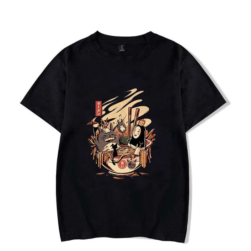 No face & Totoro in ramen bowl t-shirt